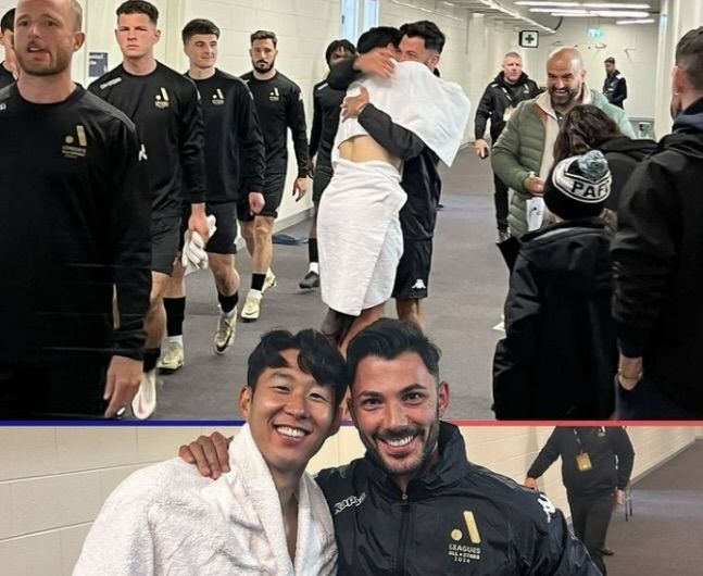 사진은 전날 촬영된 것으로 친선 경기 일정을 소화하기 위해 호주 멜버른을 찾은 토트넘의 손흥민이 홈구장에서 훈련을 시작하려는 아슬란을 복도에서 마주한 상황으로 보인다. 아슬란은 지난해부터 호주 A리그의 멜버른 시티에서 뛰고 있다.