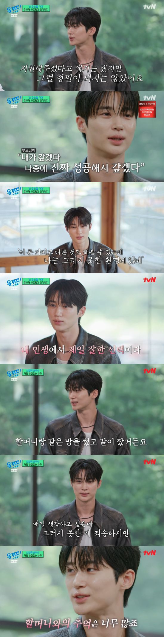 변우석은 "사실 어렸을 때 그런 생각 하지 않냐. '내가 이 큰 돈 가지고 다른 것도 해볼 수 있고 이런 경험도 해볼 수 있는데 나는 그러지 못한 환경에 있네' 이런 생각도 했었다. 그렇게 하고 부모님 표정을 볼 때 '내 인생에서 제일 잘한 선택이다' 할 정도로 그건 잊을 수가 없다. 너무 잘한 선택이었던 거 같다"라며 뿌듯해했다.