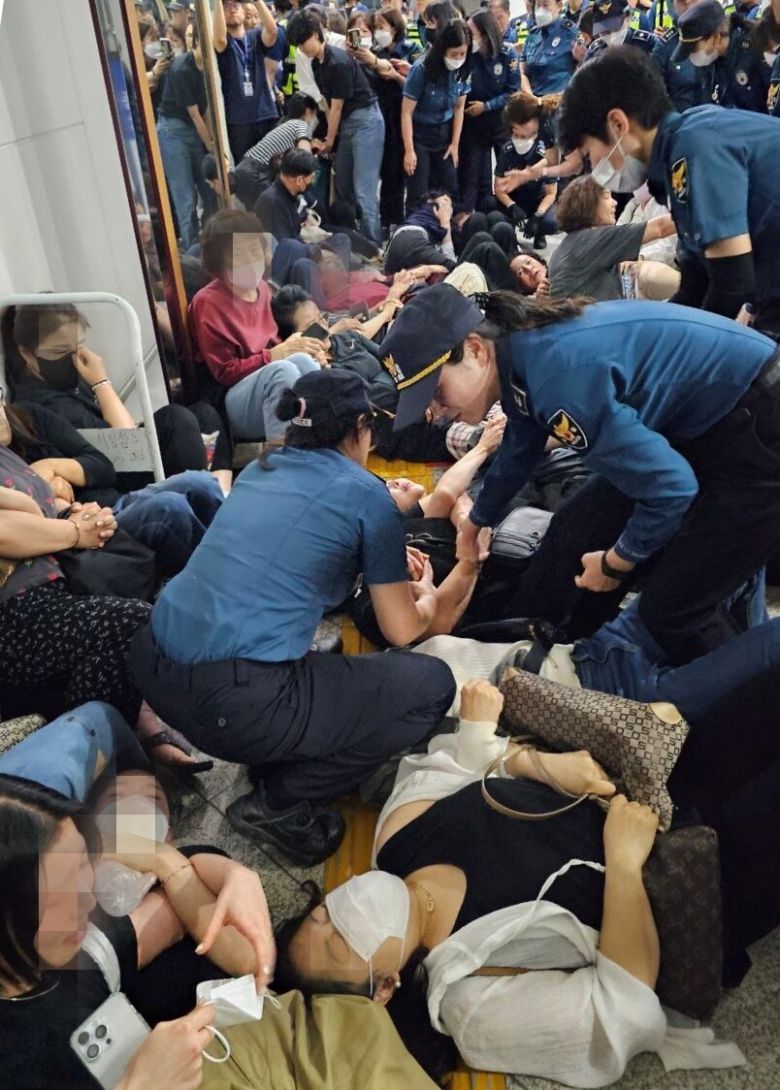 중앙로지하상가 상인들이 대전시의 지하상가 공개경쟁입찰 방침에 항의하며 시장 면담을 요구하다 강제 해산당했다.