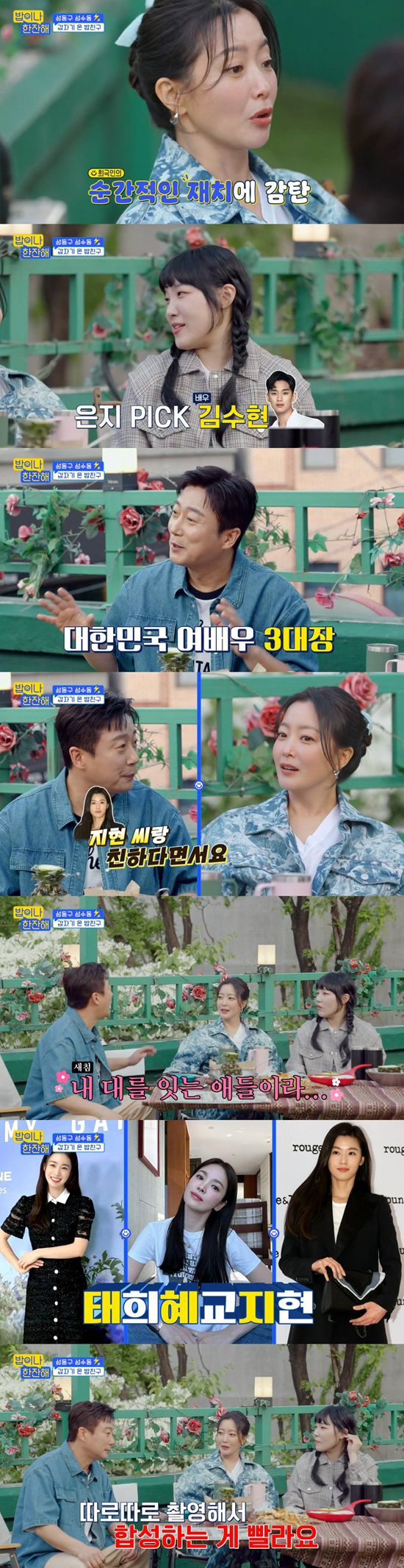 이에 "내 대를 잇는 애들이라"라며 미모 부심을 보였고, 이수근은 "3대장이 있지 않냐. 태혜지. 이렇게 한번 모이죠?"라고 말했다. 그러자 김희선은 "따로따로 촬영해서 합성을 하는 게 빠르다"라며 섭외가 쉽지 않음을 이야기했다.