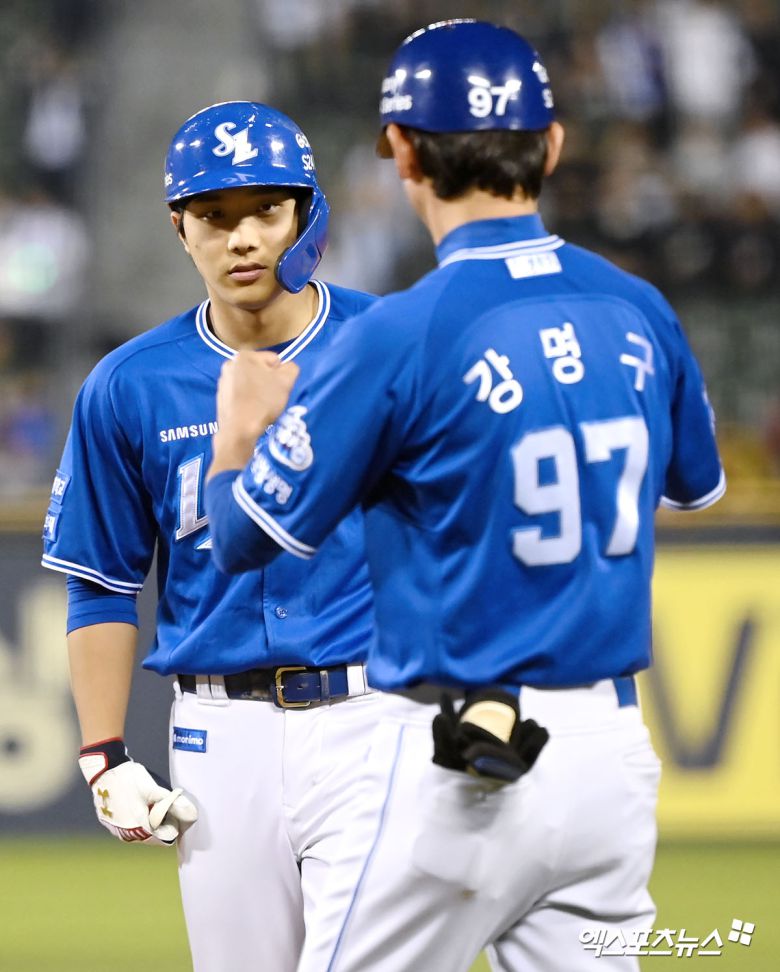 삼성은 계속된 2사 1·3루 추가 득점 찬스도 살려냈다. 이재현의 1타점 적시타, 김헌곤의 1타점 2루타, 강민호의 2타점 2루타가 연이어 터지면서 순식간에 스코어를 5-0으로 만들었다. 다만 강민호가 2루타를 친 뒤 왼쪽 발목에 불편함을 호소, 대주자 이병헌과 교체되는 변수가 발생했다.