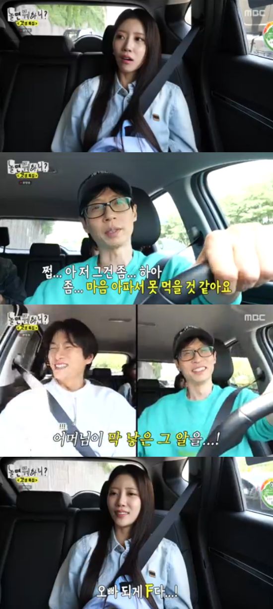 이들은 갓 나온 빵이나 혹시 갓 낳은 달걀을 먹으러 가는 것 아니냐고 생각했다. 이에 유재석은 "갓 낳은 달걀은 마음이 아파서 못 먹을 것 같다. 어머님이 갓 낳은 달걀을..."이라고 진지하게 말했다.