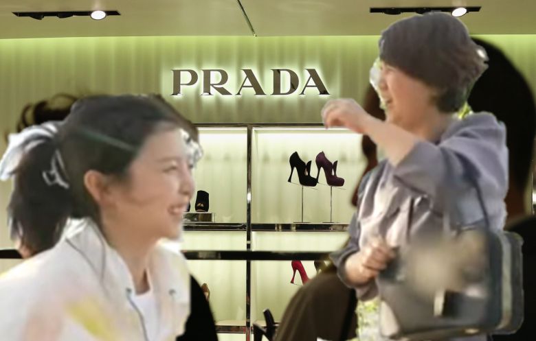 배우 주현영(왼쪽)과 그의 모친, 그리고 프라다 매장 모습 [MBC·게티이미지]