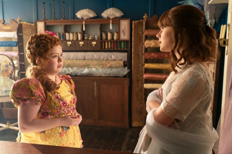 넷플릭스 오리지널 시리즈 ‘브리저튼 시즌 3’에서 퍼넬러피 페더링턴(니컬라 코클런·왼쪽)과 엘로이즈 브리저튼(클로디아 제시)은 사교계에서 우정을 나눈다. 넷플릭스 제공 |