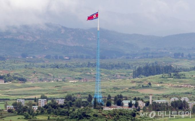 우리 군이 28일 밤 경기·강원 접적(接敵) 지역에서 대남 전단(삐라)으로 추정되는 물체를 식별해 대응하고 있다. 사진은 지난해 7월 경기도 파주시 도라전망대에서 바라본 북한의 모습. / 사진=뉴시스 |