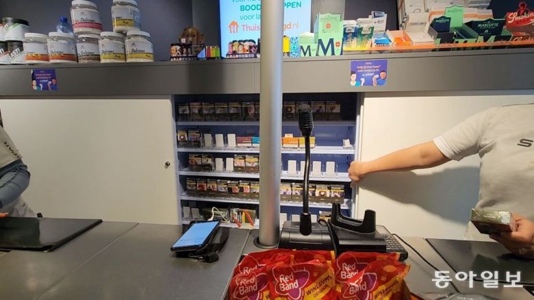 28일(현지 시간) 네덜란드 헤이그의 한 슈퍼마켓. 한국 편의점에서 흔히 보이던 담배 진열대가 보이지 않았다. 나이를 확인한 직원이 계산대 뒤 흰색 수납장을 열자 그제야 담배 진열대가 나타났다. 이 점원은 “아동·청소년이 담배에 노출되는 걸 최대한 줄이기 위한 조치”라며 “규정상 담배를 수납장 안이나 커튼 뒤에 두고 고객이 요청할 때만 꺼내야 한다”고 말했다.