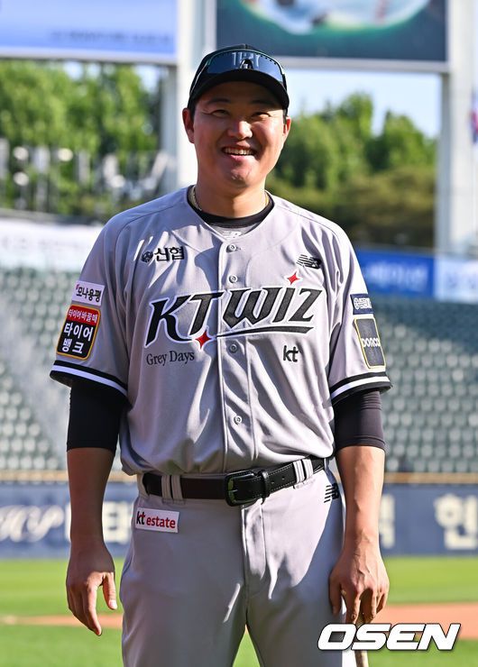 [OSEN=잠실, 박준형 기자] 29일 오후 서울 잠실구장에서 ‘2024 신한 SOL BANK KBO리그’ 두산 베어스와 KT 위즈의 경기가 진행된다.이날 두산은 최준호를 케이티는 원상현을 선발투수로 내세웠다.경기 앞서 삼성에서 트레이드된 KT 오재일이 포토타임을 갖고 포즈를 취하고 있다. 2024.05.29 / soul1014@osen.co.kr |