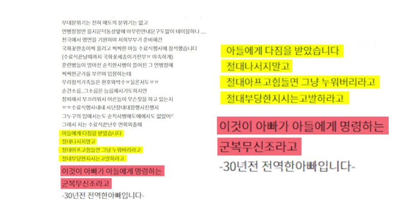 사고가 난 신병교육대 수료식에 다녀온 부모는 부당한 지시는 따르지 말라고 글을 남겼습니다.