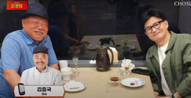 가수 김흥국(사진 왼쪽)과 한동훈 전 국민의힘 비상대책위원장이 30일 두시간 가량 만나 대화를 나눈 것으로 알려졌다. (사진=TV조선 화면 캡처)