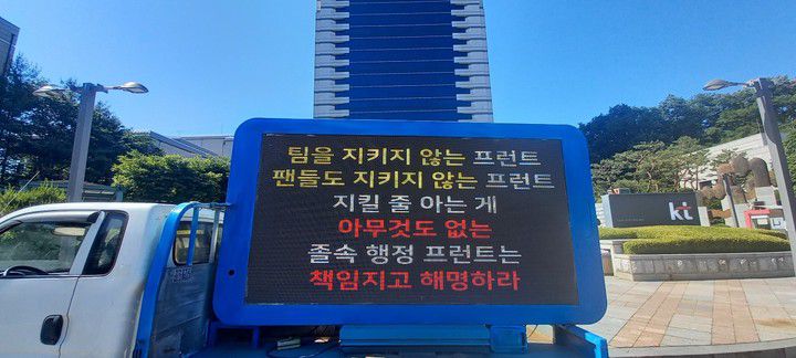 한편 KT롤스터 팬덤은 지난 2020년 12월 스토브리그 당시에도 프런트의 지지부진한 운영에 큰 분노를 표하며 광화문 일대에서 한 차례 트럭시위를 전개한 바 있다.
