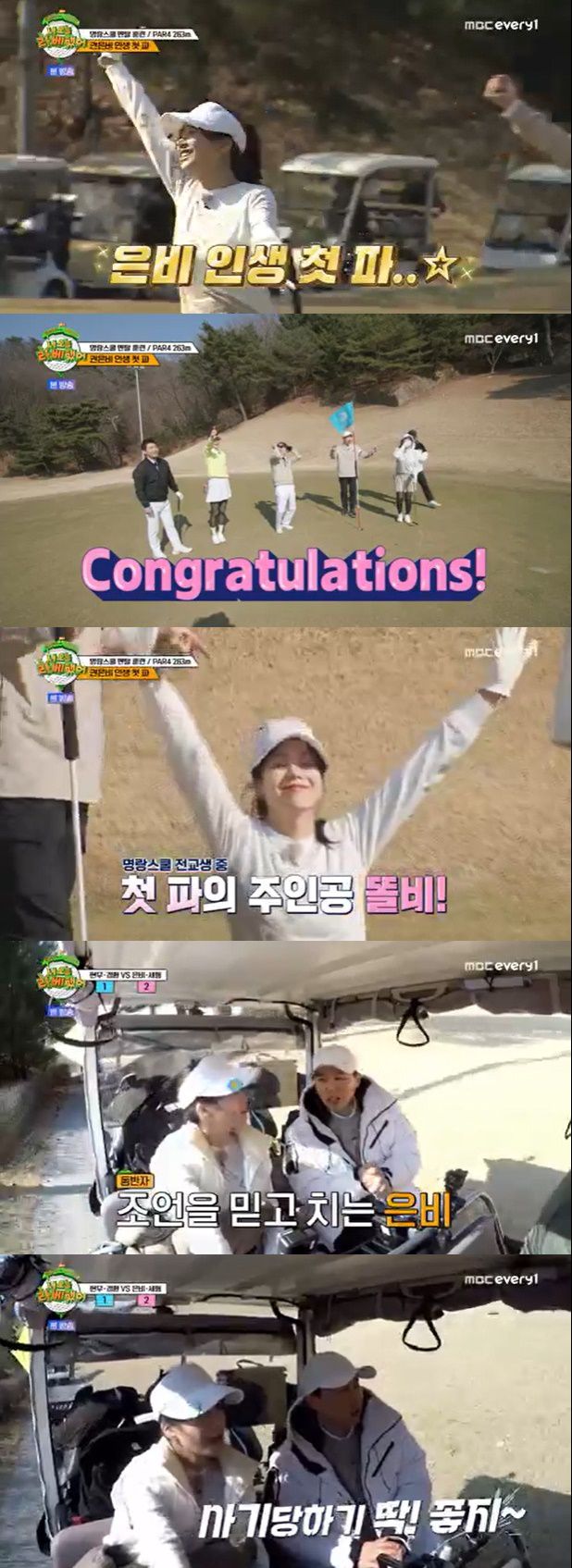이날 권은비는 라운딩 인생 첫 파를 성공했다. 권은비는 이내 무릎을 꿇으며 "나 진짜 눈물 날 것 같다"며 그 자리에서 온몸으로 기쁨을 표했다. 상대편인 전현무는 "내 주변에는 아무도 없다"며 씁쓸해했지만, 모두들 축하해주는 분위기였다.