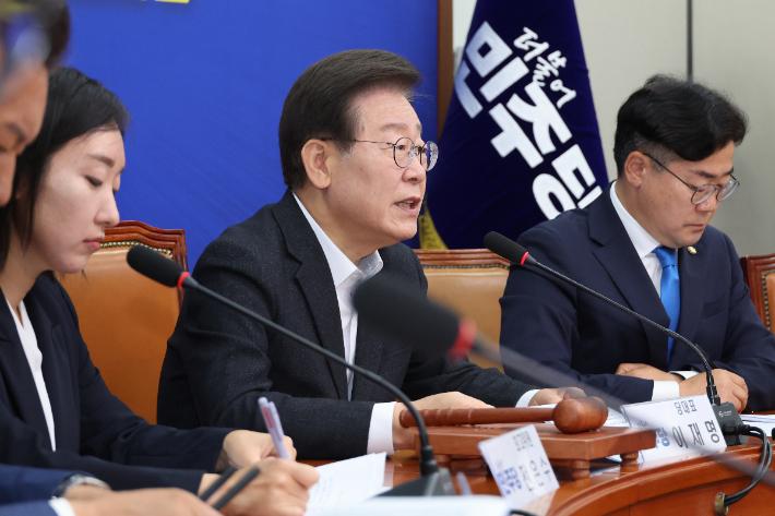 더불어민주당 이재명 대표가 5일 오전 서울 여의도 국회에서 열린 최고위원회의에서 발언하고 있다. 연합뉴스 |