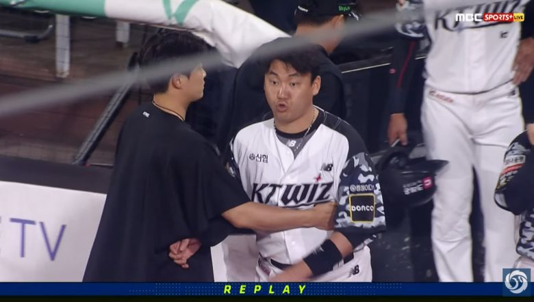 두 사람을 5분여간 머물며 KT 주장 박경수에게 전날 있었던 일에 사과했다.