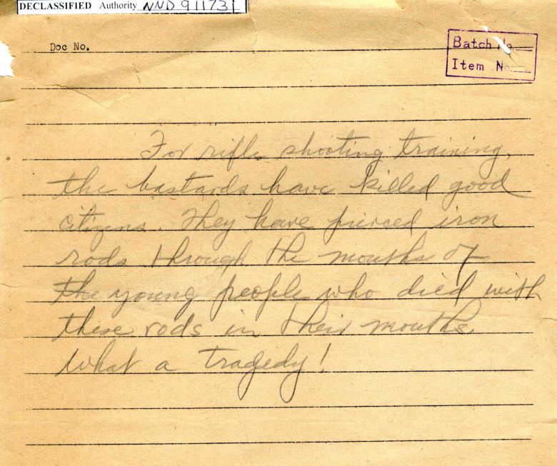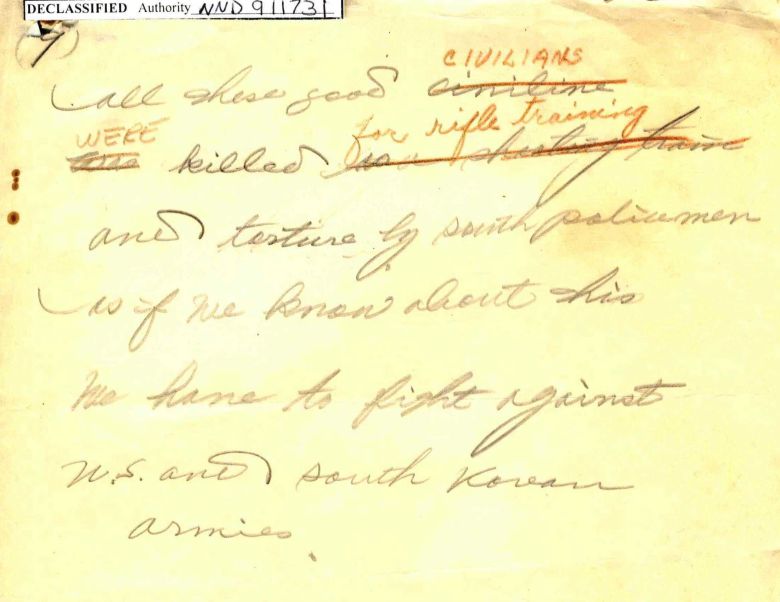 국립중앙도서관 소장 미군 노획 북한군 사진묶음 '학살한 애국자의(하략).' |