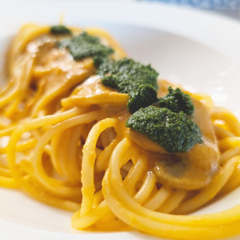 워터렌틸은 맛과 향이 강하지 않아 채소를 싫어하는 아이도 거부감 없이 즐길 수 있다. 요리에 넣을 때 색감도 좋다. 위쪽 사진부터 손으로 뭉쳐 잡은 워터렌틸, 팟타이 로제파스타 찹스테이크에 얹은 워터렌틸. 바이루트 제공 |