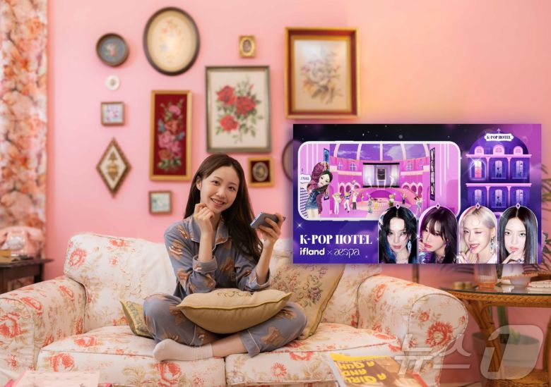 SK텔레콤은 메타버스 서비스인 이프랜드(ifland)에 K-POP 아이돌과 글로벌 팬들이 만나는 새로운 메타버스 팬 커뮤니티인 ‘K-POP 호텔’을 오는 10일 오픈한다고 밝혔다. 사진은 SKT 모델이 ‘K-POP 호텔’을 이용하는 모습. (SKT 제공) 2024.6.9/뉴스1 |