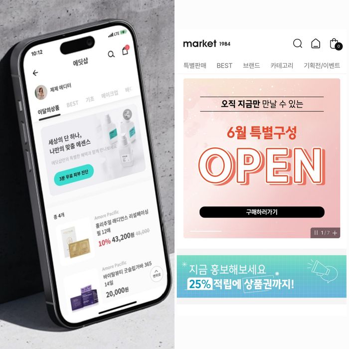 아모레퍼시픽 '에딧샵'(사진=아모레퍼시픽), LG생활건강 '마켓1984' (사진=마켓1984 홈페이지 갈무리)