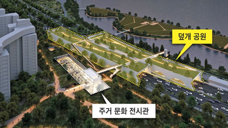 2027년 서울 서초구 반포동 올림픽대로에 1만㎡ 크기의 ‘덮개 공원’이 생긴다. 왕복 10차로 올림픽대로 상부에 콘크리트 덮개를 씌우고 공원을 조성해 반포주공1단지 재건축 아파트와 한강공원을 연결한다.