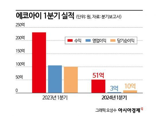 에코아이는 지난 3년 동안 빠르게 외형이 성장했다. 영업수익은 2020년 95억원, 2021년 270억원, 2022년 601억원으로 3년간 평균 성장률 149.8%를 기록했다. 지난해 영업수익 648억원을 기록하면서 성장 속도가 느려졌다. 성장 둔화 우려가 커지면서 주가도 힘을 못받는 것으로 해석할 수 있다. 올해 1분기 영업수익 51억원, 영업이익 3억원을 기록했다. 지난해 1분기 대비 영업수익은 78% 줄었고, 영업이익은 97% 감소했다. 회사 측은 기후변화 체제 변경으로 온실가스 감축사업 인증 기준을 재정립 중이라며 2026년까지 국내 배출권 전환 지연 물량이 존재한다고 설명했다. 가격 상승을 기대하며 판매 가능한 KOC 물량을 판매하지 않고 보류 중이며 실적 회복이 가능할 것으로 기대했다. 탄소배출권 거래 가격에 따른 실적 변동성이 크다는 것은 리스크 요인이기도 하지만 극적인 실적 개선 가능성도 배제할 수 없다는 의미다.