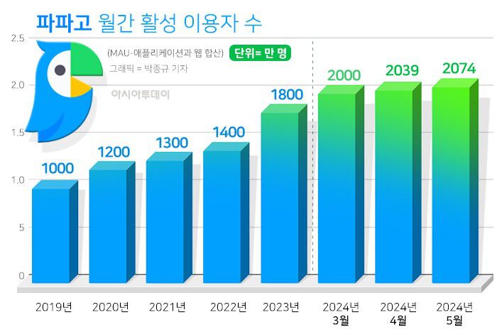 2016년 출시된 파파고의 MAU는 2019년 1000만 명을 돌파한 뒤 2020년 1200만 명, 2021년 1300만 명, 2022년 1400만 명, 지난해 1800만 명으로 증가하고 있다.