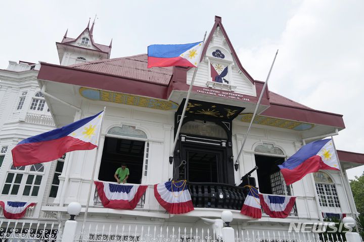 [카위트=AP/뉴시스] 10일(현지시각) 필리핀 카비트주 카위트에 있는 에밀리오 아기날도 사원에서 작업자들이 독립기념일 축하 행사 준비를 하고 있다. 필리핀 독립 영웅인 아기날도는 1989년 6월 12일 이곳에서 스페인으로부터의 독립을 선언했으며 필리핀 초대 대통령을 지냈다. 2024.06.11.