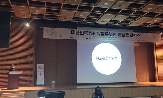 12일 경기도 판교 경기창조경제혁신센터 국제회의장에서 한국게임미디어협회 주최로 열린 ‘제3회 대한민국 NFT/블록체인 게임 컨퍼런스’에 참석한 넥슨 넥스페이스 손연수 BD 파트너십 헤드는 ‘메이플스토리 유니버스: MMORPG에 실물 경제 가져오기’를 주제로 기조 강연에 나섰다.