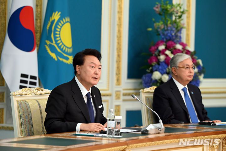 [서울=뉴시스] 양소리 기자 = 윤석열 대통령의 카자흐스탄 국빈 방문 일정이 오는 13일(현지시각)로 마무리된다. 윤 대통령은 2박3일간 카자흐스탄에 머물며 양국의 경제·안보 협력을 논의했다. 카심-조마르트 토카예프 대통령은 '한-중앙아시아 K 실크로드 협력 구상'과 한-중앙아시아 정상회의 개최를 적극 지지한다고 밝혔다.