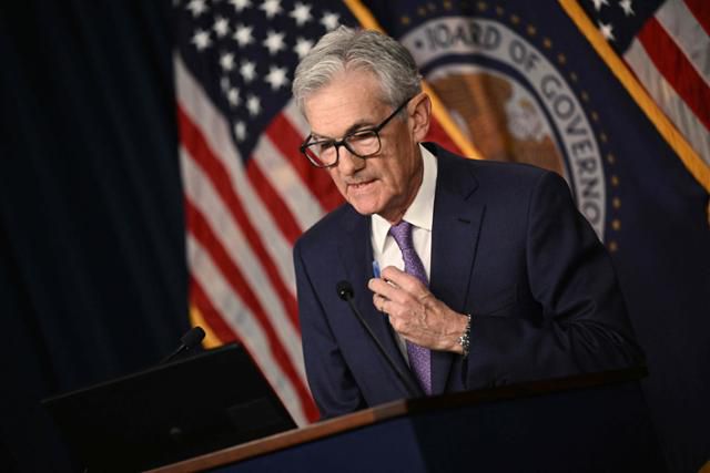 제롬 파월 미국 연방준비제도(Fed·연준) 의장이 12일 워싱턴 연준에서 연방공개시장위원회(FOMC) 정례 회의를 끝낸 뒤 기자회견을 하고 있다. 워싱턴=AFP 연합뉴스 |