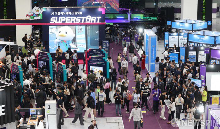 [서울=뉴스핌] 이호형 기자 = 13일 오전 서울 삼성동 코엑스 B홀에서 열린 '넥스트라이즈(NextRise 2024, Seoul)' 스타트업 박람회에서 방문객들이 스타트업 부스를 둘러보고 있다.넥스트라이즈는 450여개의 스타트업 및 글로벌 기업의 부스 전시와 함께 150여개의 글로벌 대·중견기업 및 70여개 이상의 벤처 캐피털이 참여한다.2024.06.13 leemario@newspim.com
