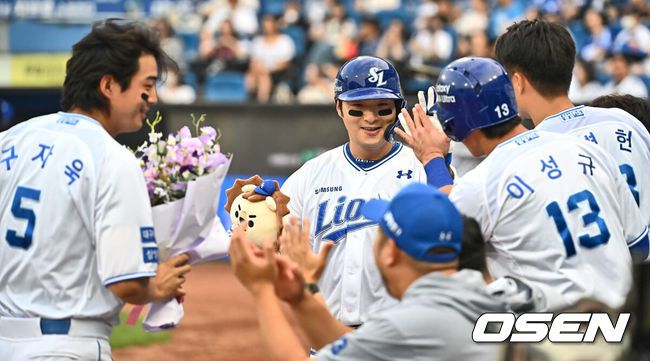 홈런에 대한 감흥은 크지 않았지만 동료들과 구단이 마련한 진심 가득한 축하 이벤트에 제대로 감동 받았다. 그는 “덕아웃에서 동료들과 하이파이브를 하는데 주장 구자욱이 꽃다발을 건네 감동을 받았다. 이닝 교대할 때 양팀에서 축하해주셔서 너무 고맙다. (삼성에) 온 지 얼마 안 됐는데 이벤트를 준비해주신 구단 관계자분들께 너무나 감사드린다”고 인사를 전했다.