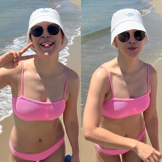 공개된 사진 속 백지영은 분홍색 비키니를 입고서 포즈를 취했다.
