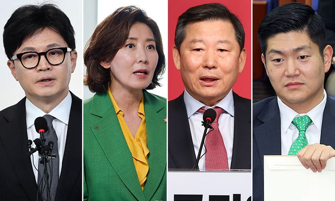 한동훈 전 국민의힘 비상대책위원장(왼쪽부터), 나경원 의원, 이철규 의원, 김재섭 의원. 연합뉴스·뉴스1 |
