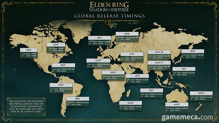 ▲ 황금 나무의 그림자 전세계 출시 시간 (사진출처: 엘든 링 공식 홈페이지) |