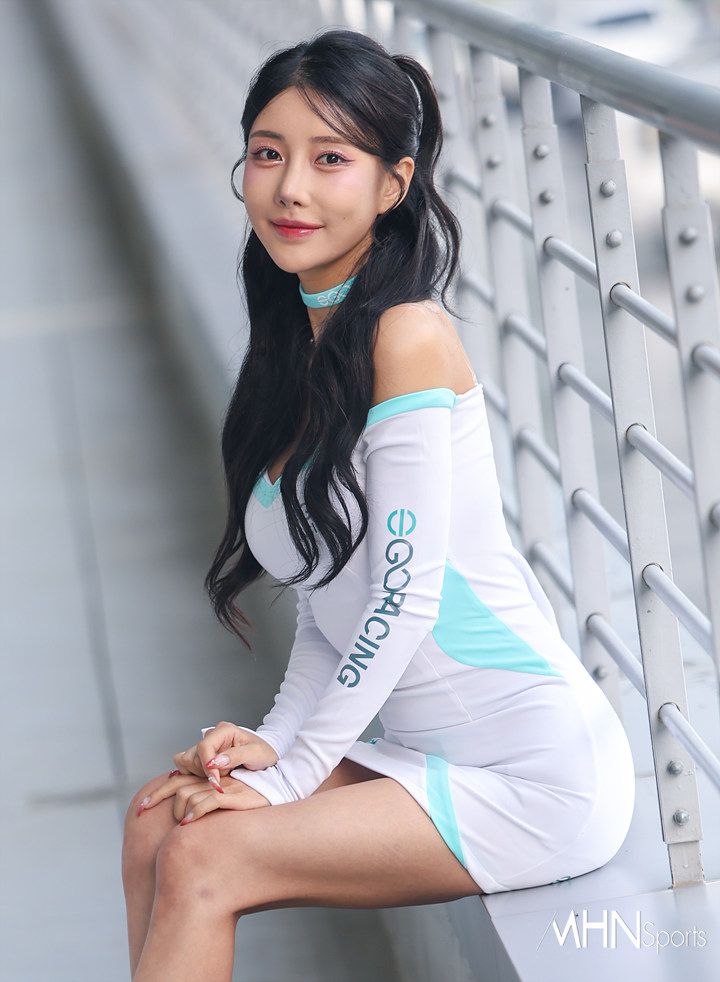 레이싱모델 이시아가 포즈를 취하고 있다.