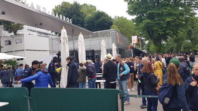 프랑스오픈 테니스 대회가 열리는 롤랑가로스 경기장에 입장하기 위해 길게 줄을 선 프랑스 테니스팬들. 사진=이석무 기자