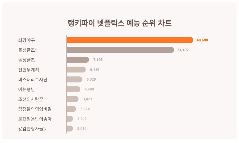 넷플릭스 예능 트렌드 지수 분석 결과 ⓒ랭키파이