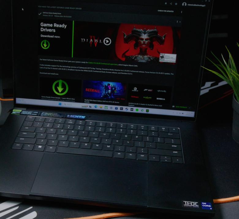엔비디아 지포스 RTX GPU가 탑재된 게이밍 노트북이라면 매우 유용한 기능을 찾을 수 있다. 새로운 엔비디아 앱(Nvidia App)은 베타 단계이며 지포스 익스피리언스(GeForce Experience)의 업데이트 버전이다. GPU에 맞는 빠른 게임 레디 드라이버 다운로드를 지원한다. 작업용으로 노트북을 사용하는 경우 스튜디오 레디 드라이버를 선택할 수도 있다.
