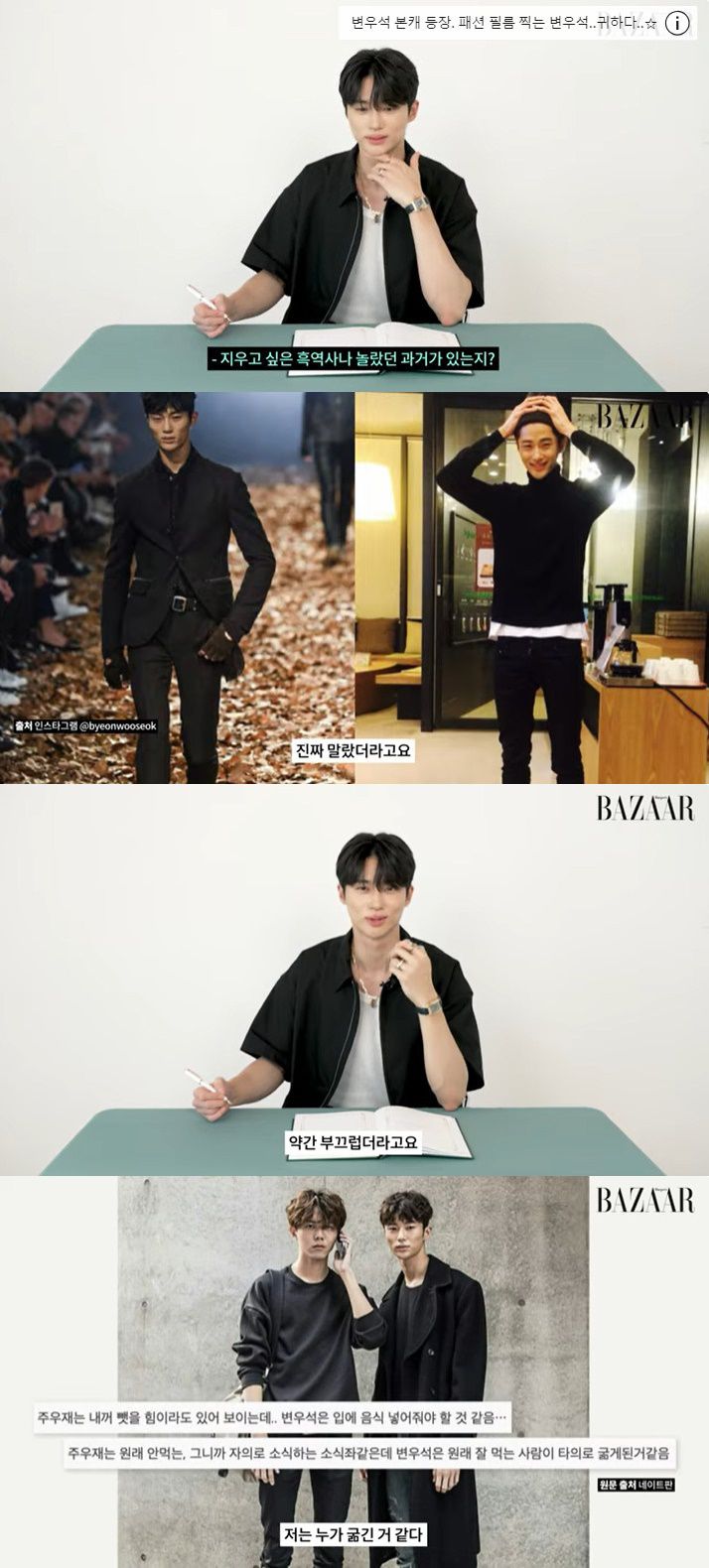 19일 유튜브 채널 'Harper's BAZAAR Korea'에는 '물어보라 했다고 이거까지 물어봐…? 네. 진짜 다 물어봤습니다. #변우석 의 #잡학사전. 근데 TMI를 곁들인.. #제작지원'이라는 제목의 영상이 업로드됐다.