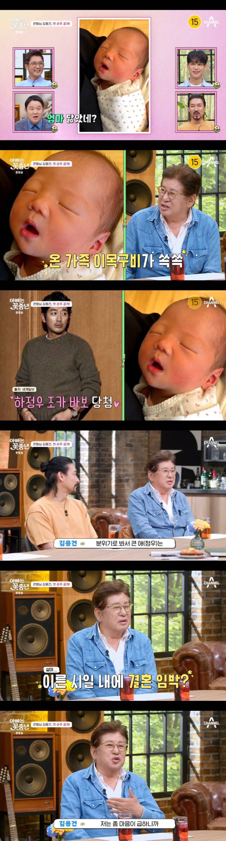 20일 방송된 채널A '아빠는 꽃중년'에서는 김용건이 손주 출산에 뿌듯해하며 대화를 이어가는 장면이 전파를 탔다.