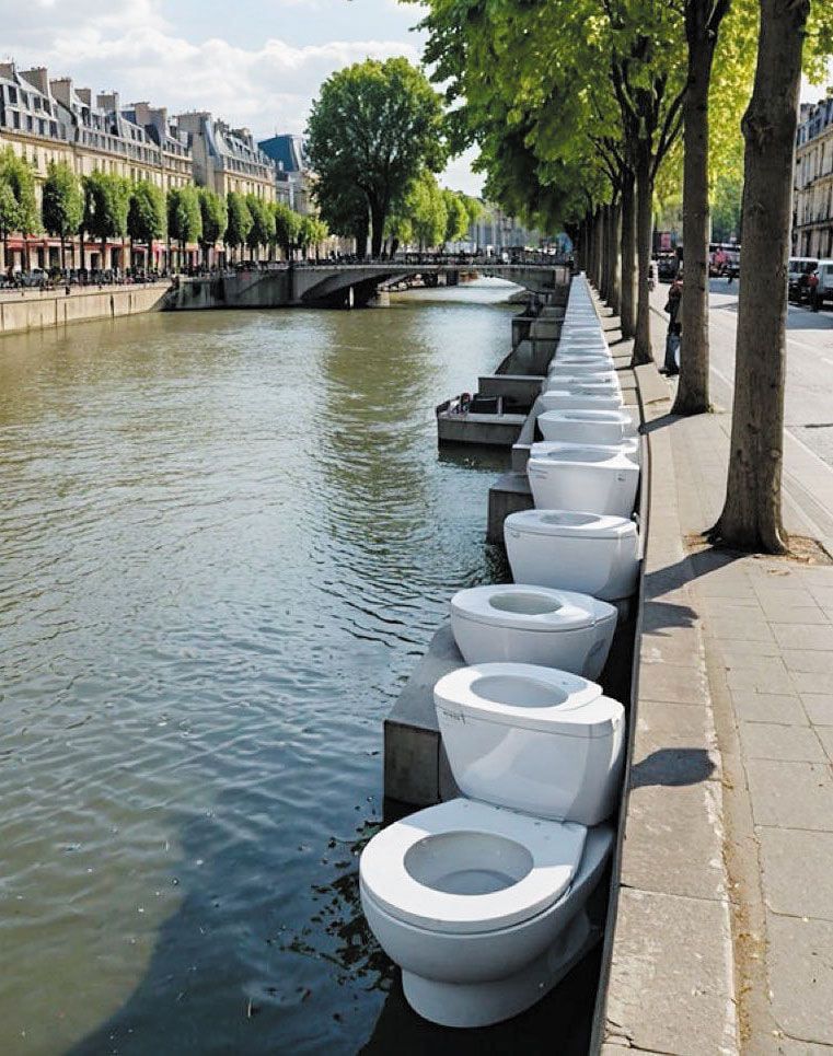 온라인에서는 프랑스 파리 센강에 변기가 놓인 모습을 합성한 사진을 공유하고 있다. /X(옛 트위터)