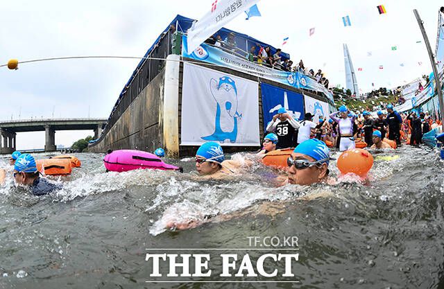 '한강크로스스위밍챌린지'는 한강을 수영으로 건너는 행사로, 잠실대교 남단에서 출발해 북단 반환점을 돌아오는 총 1.8km를 수영한다.