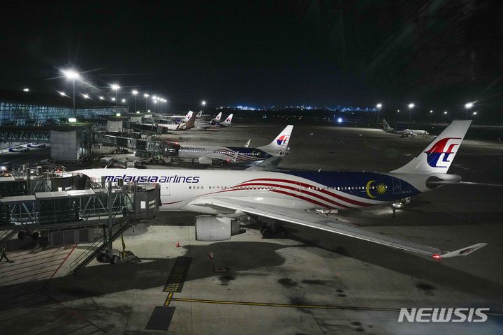 [쿠알라룸푸르(말레이시아)=AP/뉴시스]말레이시아 세팡의 쿠알라룸푸르 국제공항에 말레이시아 항공사 여객기가 서 있다. 지난 22일 대만행 대한항공 보잉 737 맥스 여객기가 갑작스런 기압 하강으로 인천공항으로 회항한데 이어 24일에도 쿠알라룸푸르에서 태국 방콕으로 향하던 말레이시아 에어버스 A-330 여객기가 여압 문제로 쿠알라룸푸르로 회항했다. 2024.06.25.