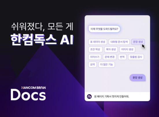 한편, 한컴은 AI 사업을 본격화하며 최근 AI 통합 브랜드 '한컴 브레인(BRAIN)'을 공개했다. 문서를 넘어 비즈니스 인텔리전스(BI), 데이터 시각화, AI 생체인증 서비스 등 다양한 산업 분야로 확장해 나가며 AI 포트폴리오를 구축하고 있다.