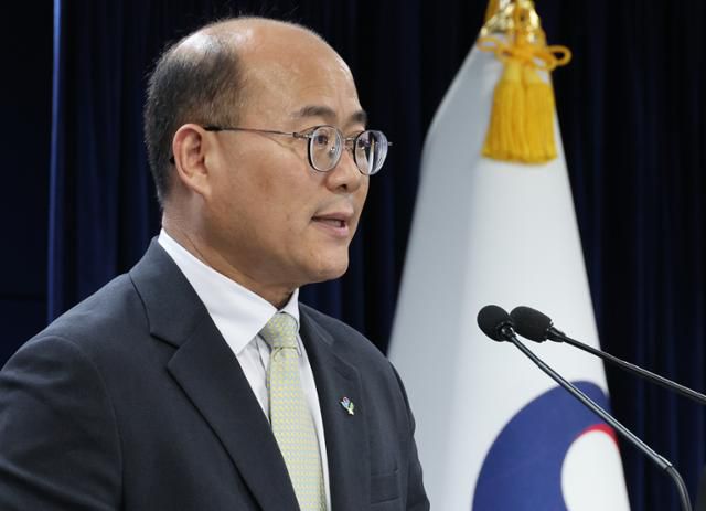 이창윤 과학기술정보통신부 1차관이 26일 서울 종로구 정부서울청사에서 과학기술계 출연연구기관의 연구개발(RD) 생태계 역동성 및 지식 유동성 활성화 추진방안 관련 브리핑을 하고 있다. 뉴시스 |
