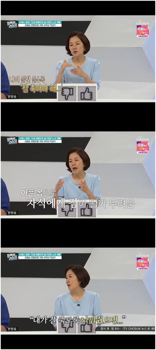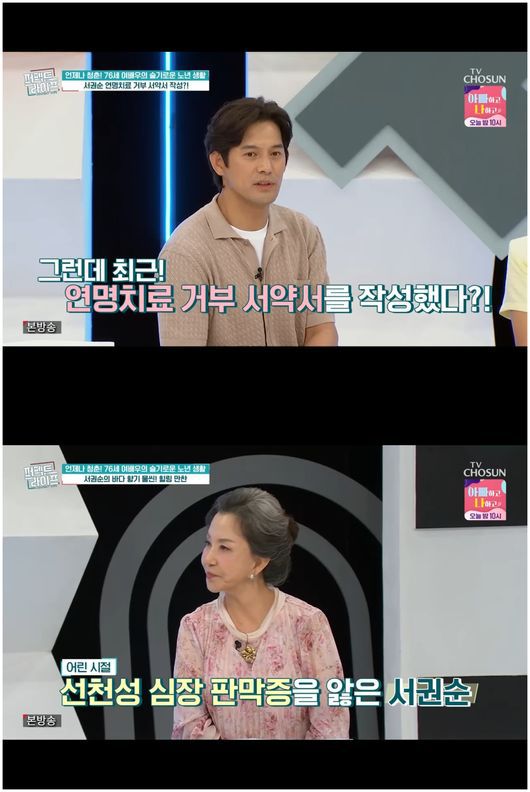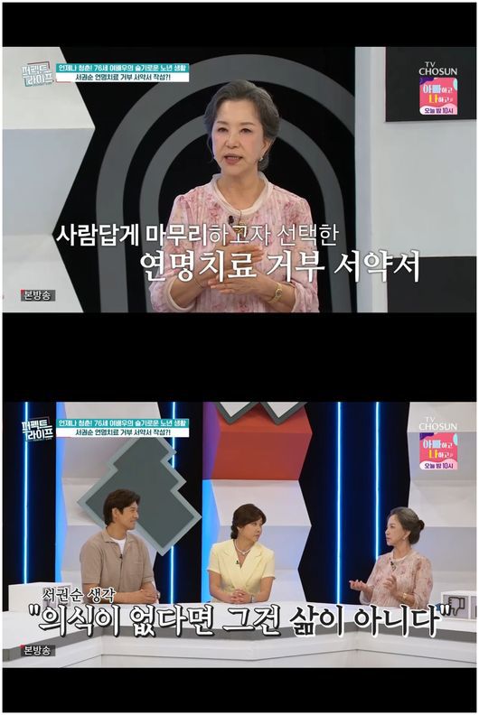 [OSEN=오세진 기자] '퍼펙트라이프' 배우 서권순이 연명 치료 거부에 서명했다고 밝혀 좌중을 깜짝 놀라게 했다.