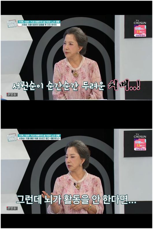 그렇다면 서권순이 이곳을 찾은 이유는 무엇일까? 서권순은 “사실 오랫동안 활동을 하다 보니까 제일 문제가 대사 암기다. 대사 암기 숙지가 되어야 한다. 그래야 현장을 나간다", “친정 어머니께서 돌아가시기 몇 년 전에 치매가 오셨다. 가족력이 있다고 해서, 전문가들에게 도움을 받고 싶었다”라며 고민을 털어놓았다.