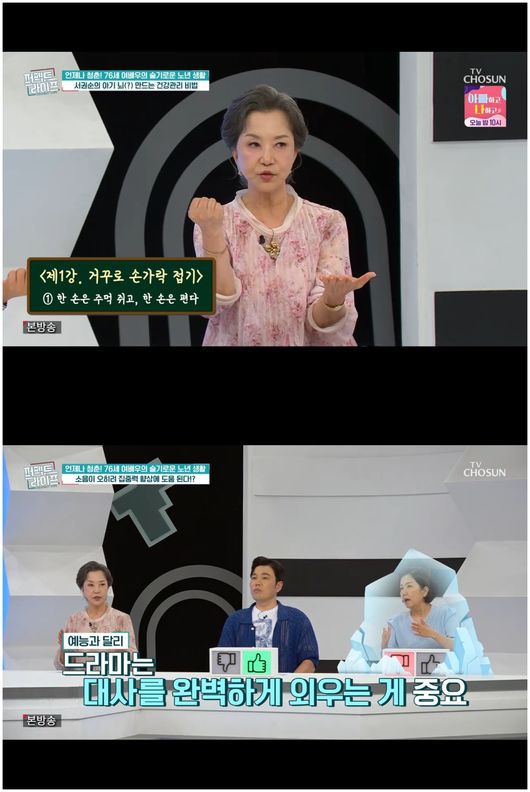뇌 건강을 위해 손가락 체조를 한다는 그는 “뇌 건강에 좋다고 해서 손가락을 거꾸로 접어 가는 거다. 헷갈리니까 노래를 부르면서 손가락 체조를 한다”라고 밝혔다.