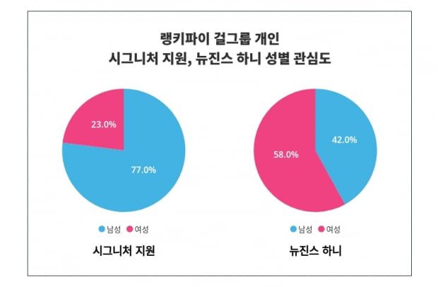 그 뒤를 이어 뉴진스 하니는 ‘여성’에게 ‘58%’ 지지를 받았으며, 뉴진스 하니는 남성보다 ‘여성’에게 더 많은 관심을 끌고 있음이 드러났다.