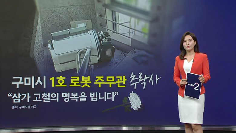 구미시에 따르면 지난 20일 오후 4시쯤 구미시의회 건물 2층에서 행정 서류를 배송하던 중 로봇 주무관이 2m 높이 계단에서 떨어졌다고 하는데요,