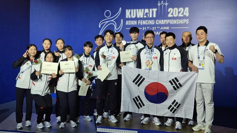 한국은 쿠웨이트 쿠웨이트시티에서 열린 2024 아시아선수권대회 마지막 날 남자 플뢰레 단체전에서 은메달, 여자 사브르 단체전에서 동메달을 획득했습니다.